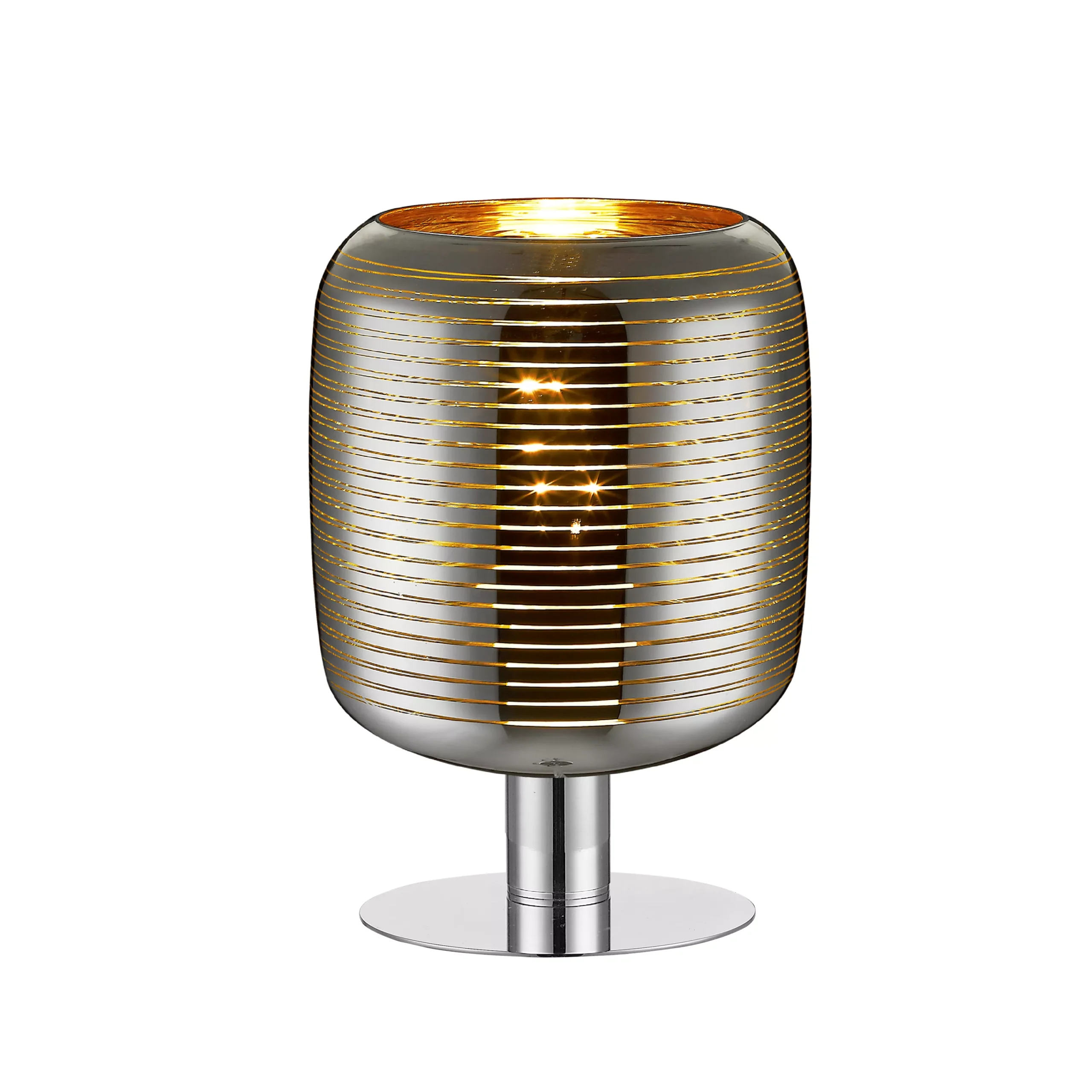 Table lamp Erin brings a quirky rock ‘n roll edge to your home. The design is reminiscent of the vintage microphones from the time of Elvis. The elaboration in real glass and the diffuse distribution of the light give Erin a luxurious appearance. The compact modern design – Erin measures 28 centimeters – fits easily on the table or cupboard. Installation is simple: you plug the plug into the socket and turn Erin on or off with the switch on the cord.