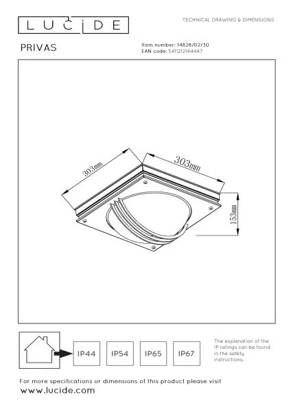 LUCIDE – PRIVAS – Wall Light Indoor/Outdoor 2XE27 IP44 L:30.3cm W: 30.3cm H:15.3cm – Black